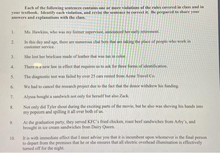 Please Correct The Folllwing Sentences And Indicate Chegg Com